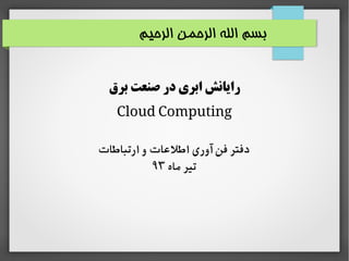طرح رایانش ابری در صنعت برق خراسان تهیه شده توسط عباس بنی اسدی مقدم کارشناس فناوری اطلاعات و ارتباطات