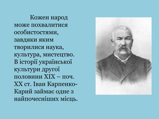 Виснажуючись фізично іморально, Карпенко-Карий душею відпочивав на