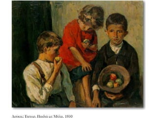 «Θνδσξή, ηη καο δείρλεη απηόο ν πίλαθαο; Όηαλθόβνπκε θαξπνύδη, βιέπνπκε ηελ ίδηαεηθόλα; Πόζα παηδηά έρνπλ δεη απηή ηελ εηθόλα; Πώο ζα νλνκάδακε απηό πνπ βιέπνπκε; Τη ζέιεη λα καο πεη ν δσγξάθνο;» 142. Σπύρος Βαζιλείοσ, Το Τραπέδη