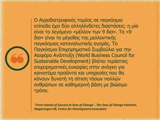 Όλοι οι άνθρωποι που ασχολούνται με τον Αγροδιατροφικό τομέα στην Ελλάδα θα πρέπει αυτό-εκπαιδευτούν στο mindset Project Management-Business Model-Διαχείριση Ιδέας που για την Ελλάδα είναι καινούργιο και πολλοί το θεωρούν ουτοπία αλλά σε διεθνές επίπεδο είναι η κοινή πρακτική που εφαρμόζεται εδώ και πολλά χρόνια.