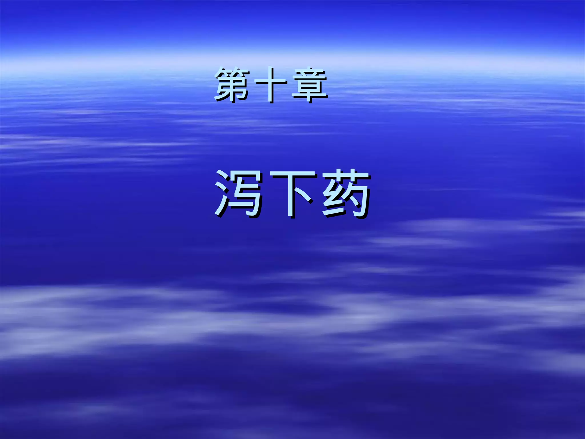 第十章介绍了泻下药的概念及分类,包括攻下药、润下药和峻下逐水药。主要适用于大便秘结、水肿等症状,各类药物有不同的作用和适应证,同时需要注意使用禁忌。文中还列举了多种具体的泻下药,并提供了其来源、性味和应用。