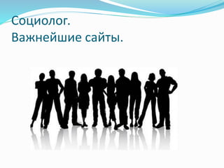 Документ представляет собой список важных сайтов для социологов, включая ресурсы и контент для изучения. Указаны ссылки на сайты, предлагающие семинары, научные фильмы, конференции и статьи. Автор благодарит за внимание.