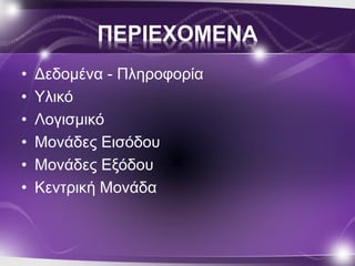 •Οι μονάδες εισόδου και οι μονάδες εξόδου