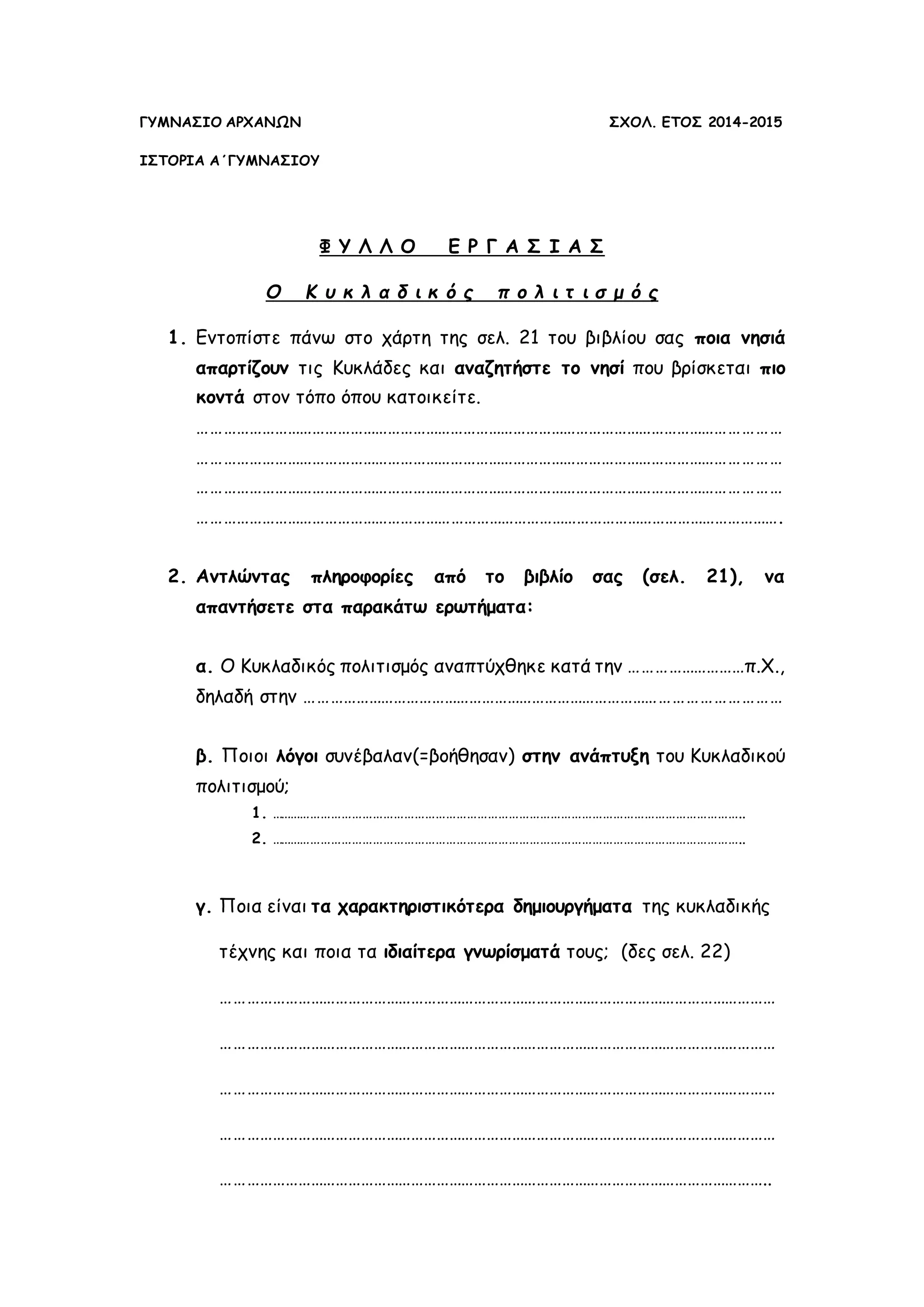 ΓΥΜΝΑΣΙΟ ΑΡΧΑΝΩΝ ΣΧΟΛ.ΕΤΟΣ 2014-2015