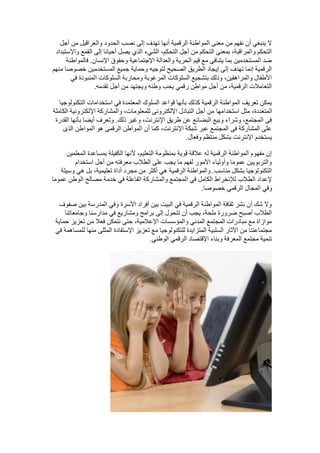 تتناول الوثيقة مفهوم المواطنة الرقمية وتأثير الثورة الرقمية على العلاقات الاجتماعية، مشيرة إلى ضرورة توجيه وحماية الأطفال من مخاطر الإنترنت. تسلط الضوء على أهمية التعليم أسريًا ومدرسيًا لتمكين المستخدمين من التعامل بشكل آمن مع التكنولوجيا. تُقترح إرشادات للأهل لحماية أبنائهم أثناء استخدامهم الإنترنت وتعزيز الوعي بالمواطنة الرقمية.