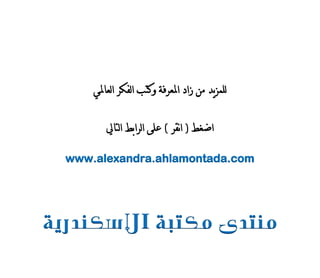 المستند يتضمن معلومات عن مكتبة الإسكندرية ومنتدى المعرفة، مع روابط لمزيد من المعلومات عبر الإنترنت مثل www.alexandra.ahlamontada.com.