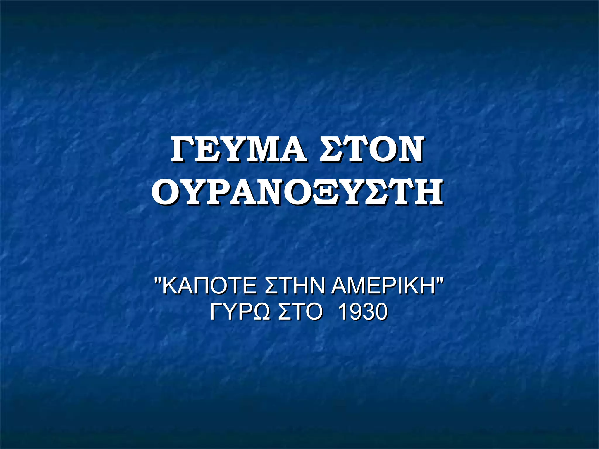 ΓΕΥΜΑ ΣΤΟΝ ΟΥΡΑΝΟΞΥΣΤΗ "ΚΑΠΟΤΕ ΣΤΗΝ ΑΜΕΡΙΚΗ" ΓΥΡΩ ΣΤΟ 1930