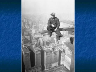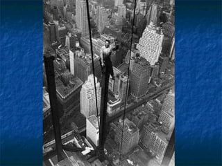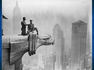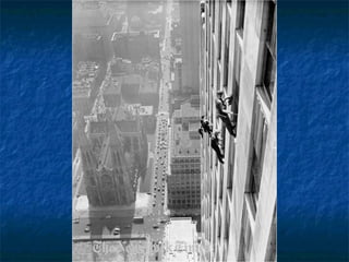 Οι φωτογραφίες σεαυτήν την παρουσίαση, είναι πραγματικές. Μερικές απ' αυτές είναι ιστορικές φωτογραφίες και τραβήχτηκαν από τον Charles Ebbets στην αρχή της δεκαετίας του '30. οι περισσότερες από αυτές απεικονίζουν τις καθημερινές σκηνές των εργαζομένων που συμμετείχαν στην κατασκευή των ουρανοξυστών μεταξύ 1920 και 1935. Όπως θα δείτε, τα μέτρα ασφαλείας ήταν κάπως ασυνήθιστα και οι φωτογραφίες που τραβήχτηκαν προσπάθησαν να παρουσιάσουν εκείνη την κατάσταση .