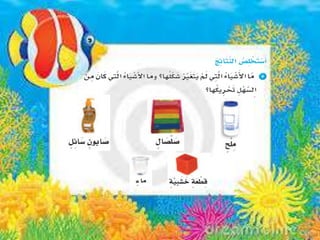 تتناول الوثيقة درسًا عن حالات المادة (الصلبة، السائلة، والغازية) لطلاب الصف الثالث الابتدائي، حيث يشمل أنشطة جماعية وفردية لتعزيز فهم الطلاب لخصائص كل حالة. تتضمن الأنشطة استكشاف وتصنيف وتجربة للمواد بهدف تطوير التعريفات المرتبطة بها. كما تشجع الوثيقة الطلاب على الربط بين المفاهيم الحياتية وابتكارات الإنسان المتعلقة بحالات المادة.