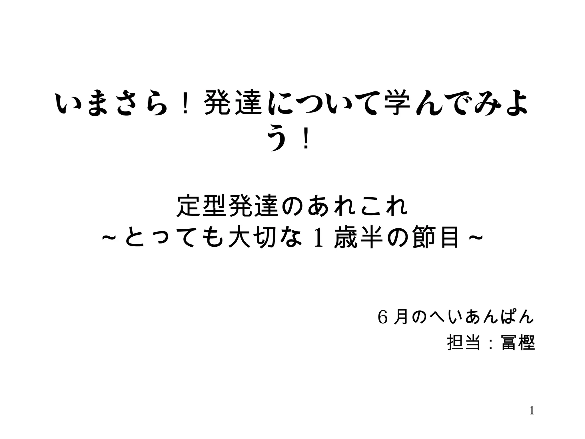 職場有志の勉強会で使用したスライド。発達についてまとめただけです。実際に乳幼児の映像を見ながら学習を進めました。