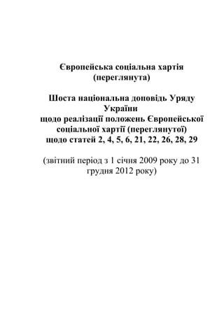 Шоста національна доповідь Уряду України щодо реалізації положень Європейської соціальної хартії (переглянутої)