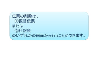 「伝票の削除」 メニューを選択します。 ①振替伝票の画面で削除する場合