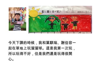 今天下課的時候,我和葉騏瑞、謝佳容一 起在草地上玩溜溜球。這是我第一次玩, 所以玩得不好,但是我們還是玩得很開