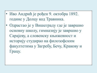 • Дело Ива андрића у контексту европске књижевности и културе,