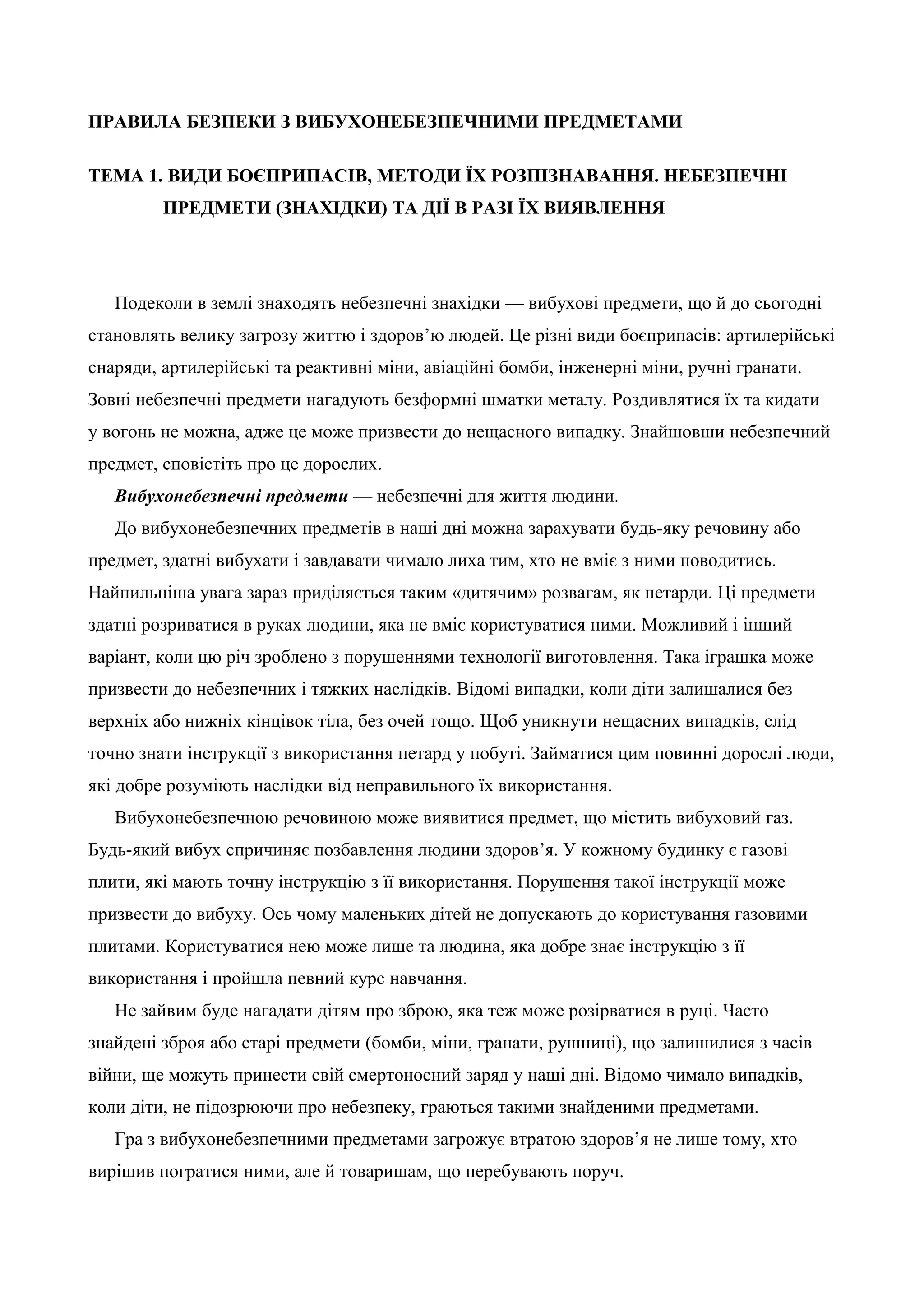 ТЕМА 1. ВИДИ БОЄПРИПАСІВ, МЕТОДИ ЇХ РОЗПІЗНАВАННЯ. НЕБЕЗПЕЧНІ