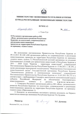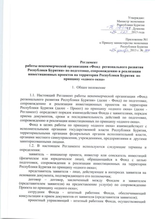 Регламент работы Фонда регионального развития РБ по принципу "одно окно"