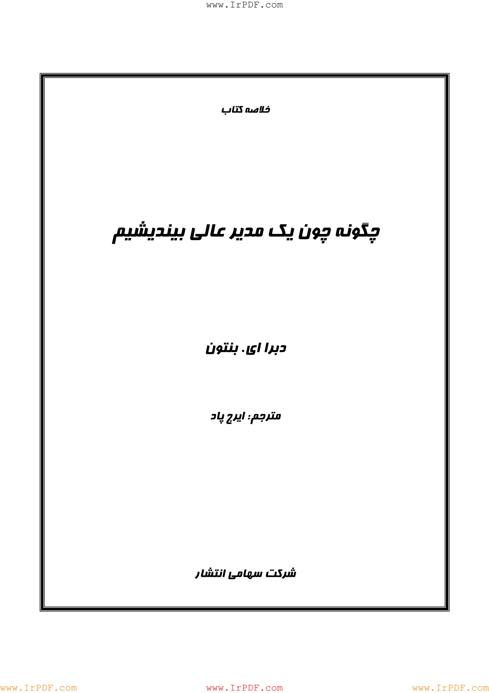 و لذ ت بخش تر مي كند. در فصول مخ ت لف اين كتاب جنب ه هاي گوناگون موضوع "چگونه چون يك مدير عالي بينديشي م "