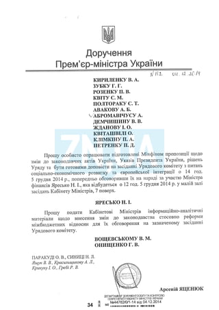 Лист до першого віцепрем’єр-міністра, міністра економіки Олексія Любченка від...