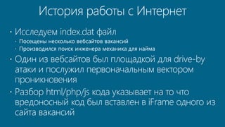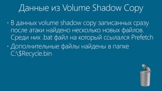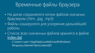 Документ содержит информацию о запуске приложений с использованием механизма prefetch в Windows, подробно описывая формат имен файлов и их связь с исполняемыми файлами и аргументами командной строки. Также упоминаются временные файлы интернета, куки и история браузера, что может быть полезно для анализа системной безопасности. В заключение, отмечается важность проведения регулярных аудитов систем и ограничения прав пользователей для повышения безопасности.