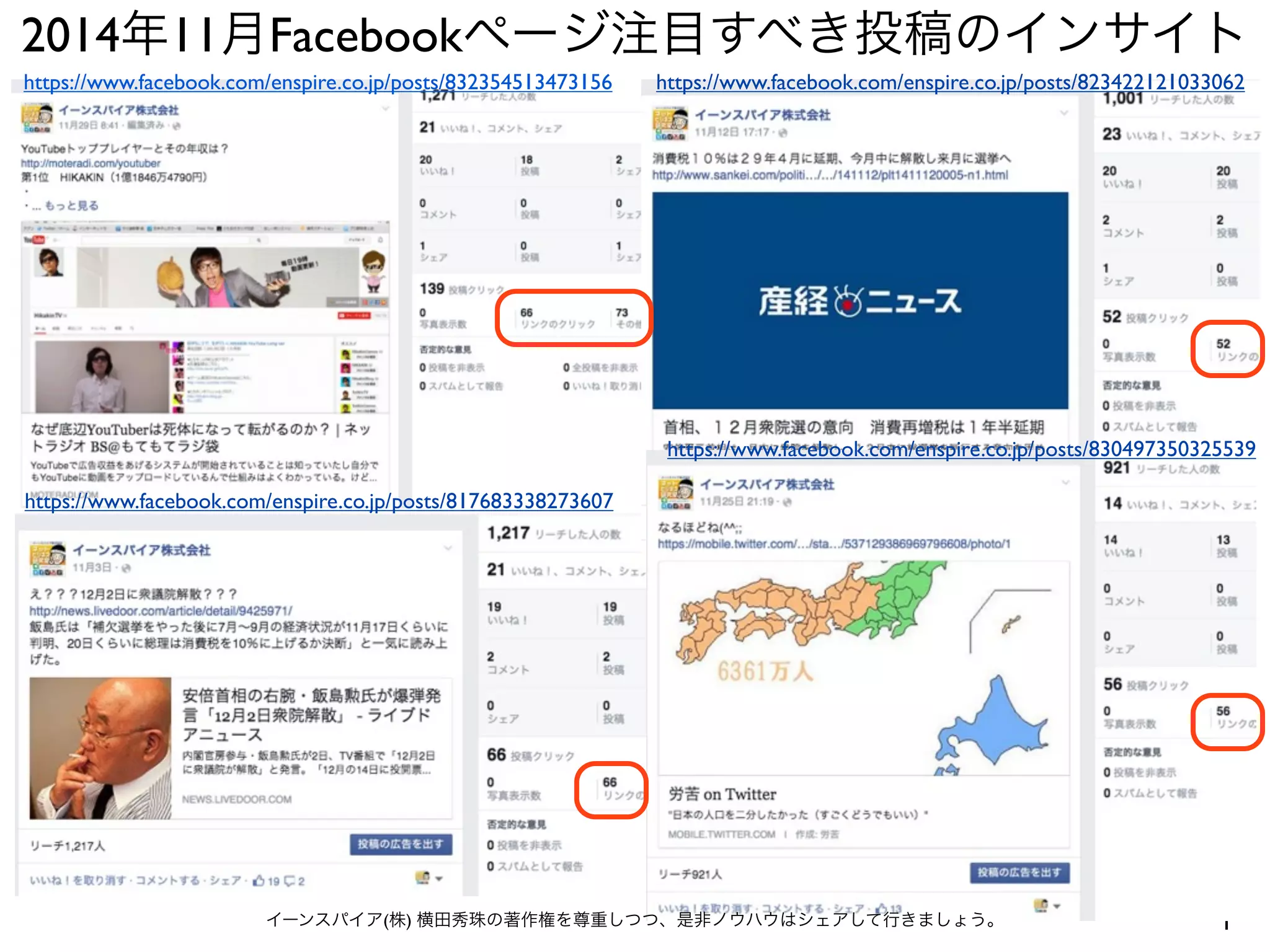 2014年11月Facebookページ注目すべき投稿のインサイト https://www.facebook.com/enspire.co.jp/posts/832354513473156 https://www.facebook.com/enspire.co.jp/posts/817683338273607