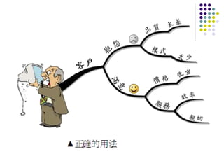 心智图法是一种由Tony Buzan在1970年代提出的辅助思考工具,主要用于笔记、讨论和总结。此法强调关键词、分类与秩序结构、颜色和图像,以提升思维和记忆效果。心智图的构建需要具备有序的逻辑关系并利用视觉元素增强联想。