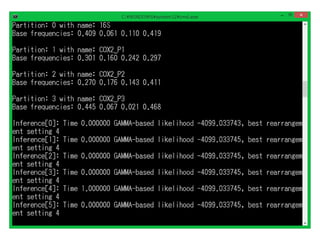 catpv RAxML_perSiteLLs. 略 … コマンド名 … 入力ファイル名( 拡張子抜き) 「 」は「次の行に改行なしで続く」という意味であることに注意 ただしスペースは入れること