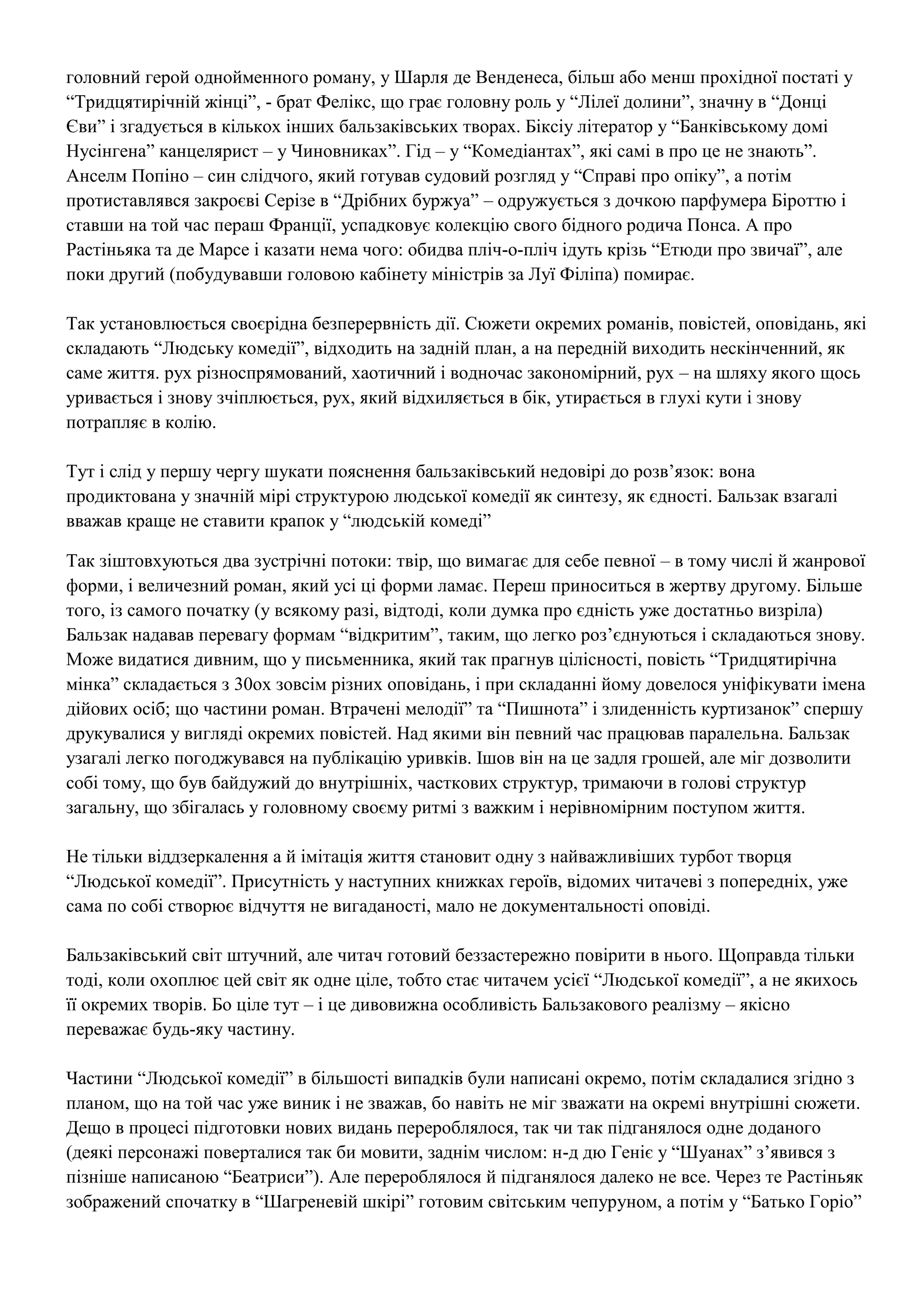 невідповідностями цілого. Таких прикладів чимало. Проте, якщо виходити з “Людської комедії” як