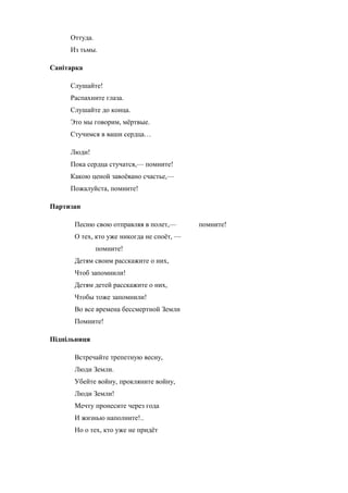 2-й ведучий залишає сцену. З’являються Солдат, Партизан та Санітарка.