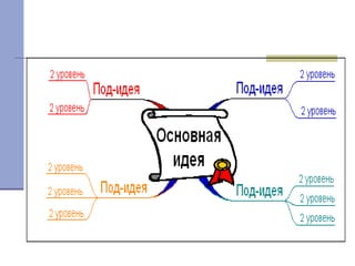 Документ описывает методику ментальных карт как эффективный инструмент для структурирования информации и оптимизации мышления. Он подчеркивает важность данного метода в обучении, повышении памяти и коммуникации, а также в развитии личностных и когнитивных навыков. В документе представлены рекомендации по созданию ментальных карт, включая визуальные и структурные элементы.