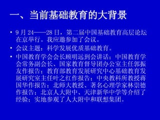 本文讨论了当前中国基础教育面临的关键问题,包括非均衡发展和应试教育,并提出改革课堂教学的必要性。强调了提高课堂教学质量和效率的重要性,呼吁教师创新教学方法,合理运用现代教育技术。再者,文中提到要关注学生的全面素质发展,减轻升学压力。