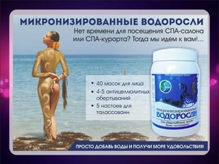 Университетская инновационная компания "Литораль" предлагает антивозрастную косметическую серию "Alga Plus", основанную на биоресурсах мирового океана, включая девять видов водорослей и другие морские компоненты. Серия обеспечивает уход за кожей, улучшая её питательные, увлажняющие и защитные свойства, что делает её уникальным продуктом на рынке. Продукты доступны по демократичным ценам, предлагая высокое качество и эффективные результаты для покупателя.