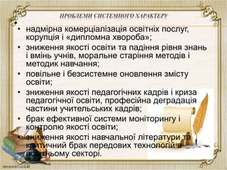 • зниження якості освіти та падіння рівня знань