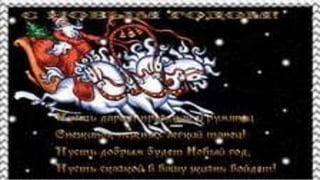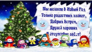 Документ описывает радостные моменты празднования нового года, когда елка приходит в дом и дети наряжают её игрушками. Дед мороз веселит всех танцами и подарками, а за окном снежинки создают атмосферу праздника. В конце праздника происходит прощание со старым годом и встреча нового.