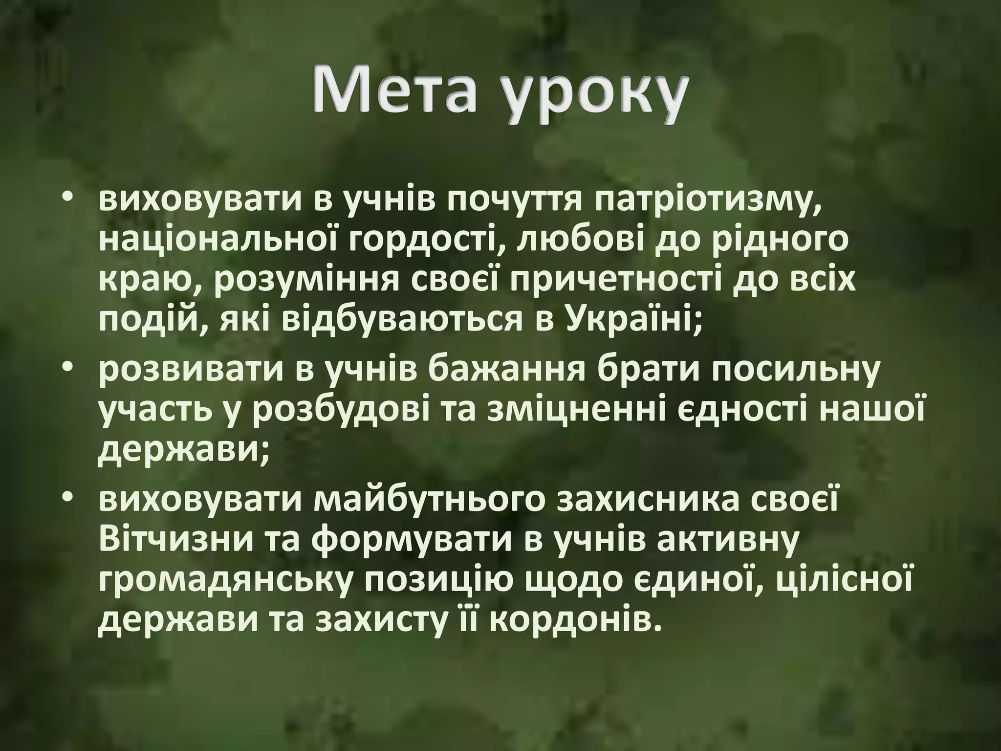 • виховувати вучнів почуття патріотизму,