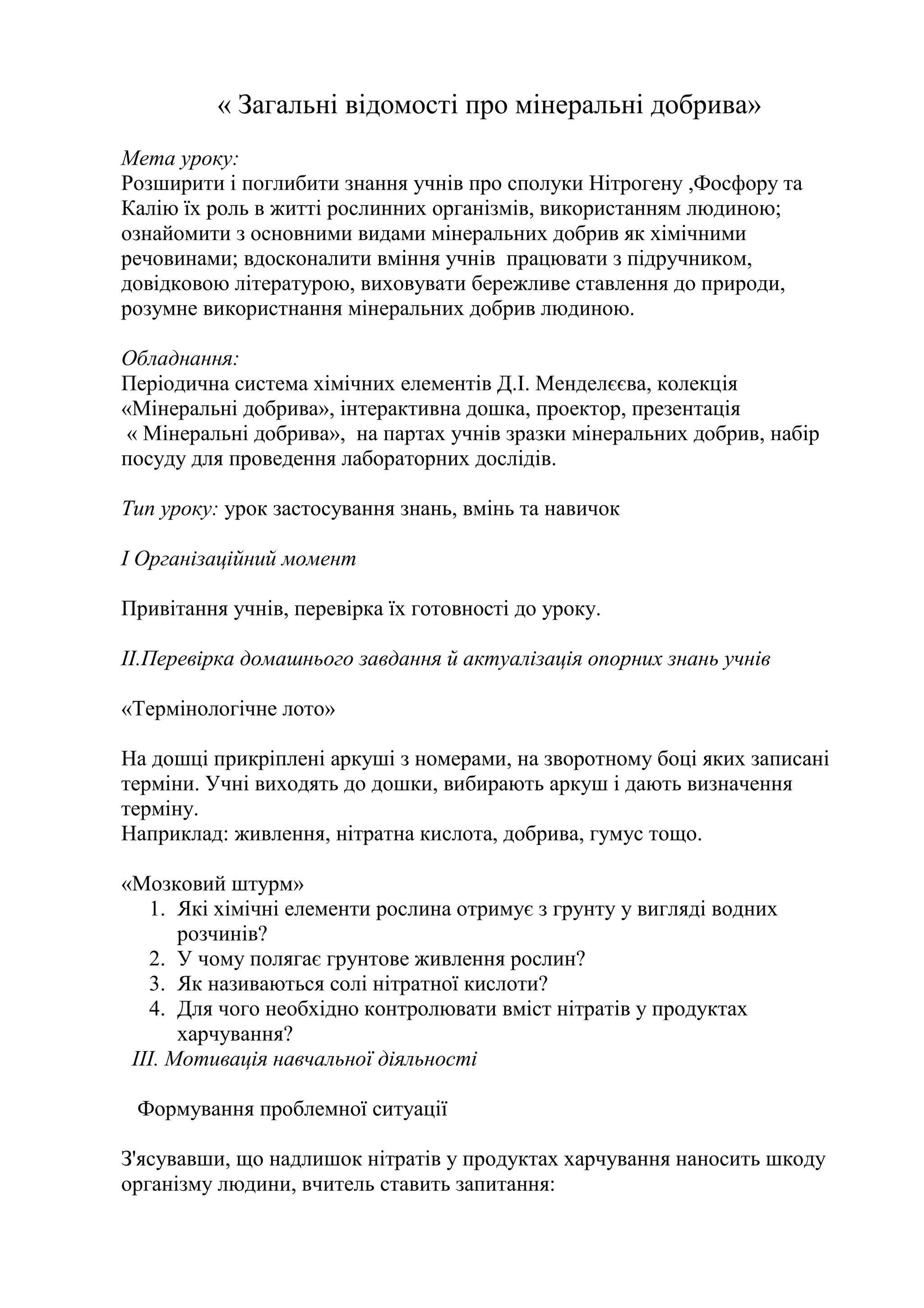 « Загальні відомостіпро мінеральні добрива»