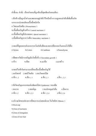 ข้อสอบ+เฉลย การสืบพันธุ์ของพืชดอก ชั้นมัธยมศึกษาปีที่ 5 PDF