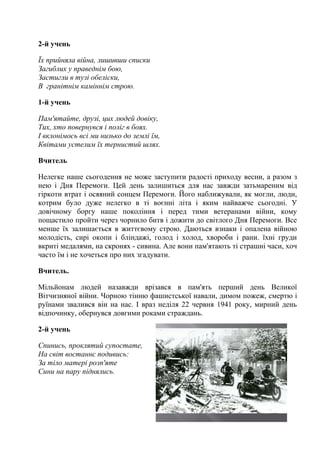 нею і Дня Перемоги. Цей день залишиться для нас завжди затьмареним від