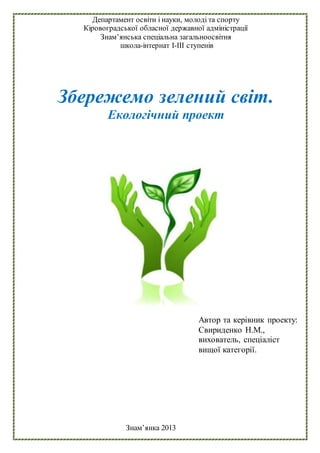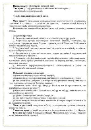 Тип проекту: Інформаційно-довідковий екологічний проект;