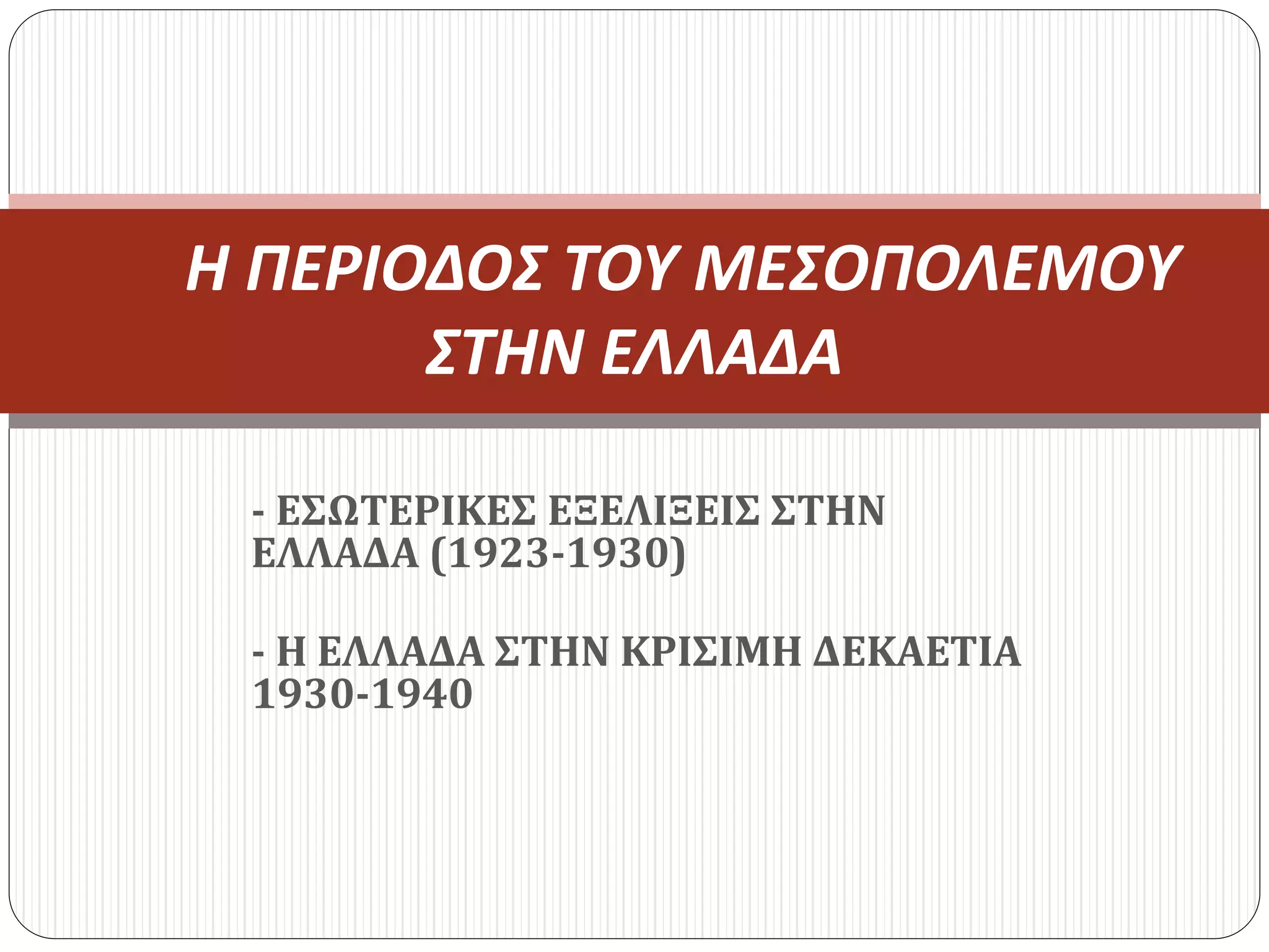 Η ΠΕΡΙΟΔΟΣ ΤΟΥ ΜΕΣΟΠΟΛΕΜΟΥ