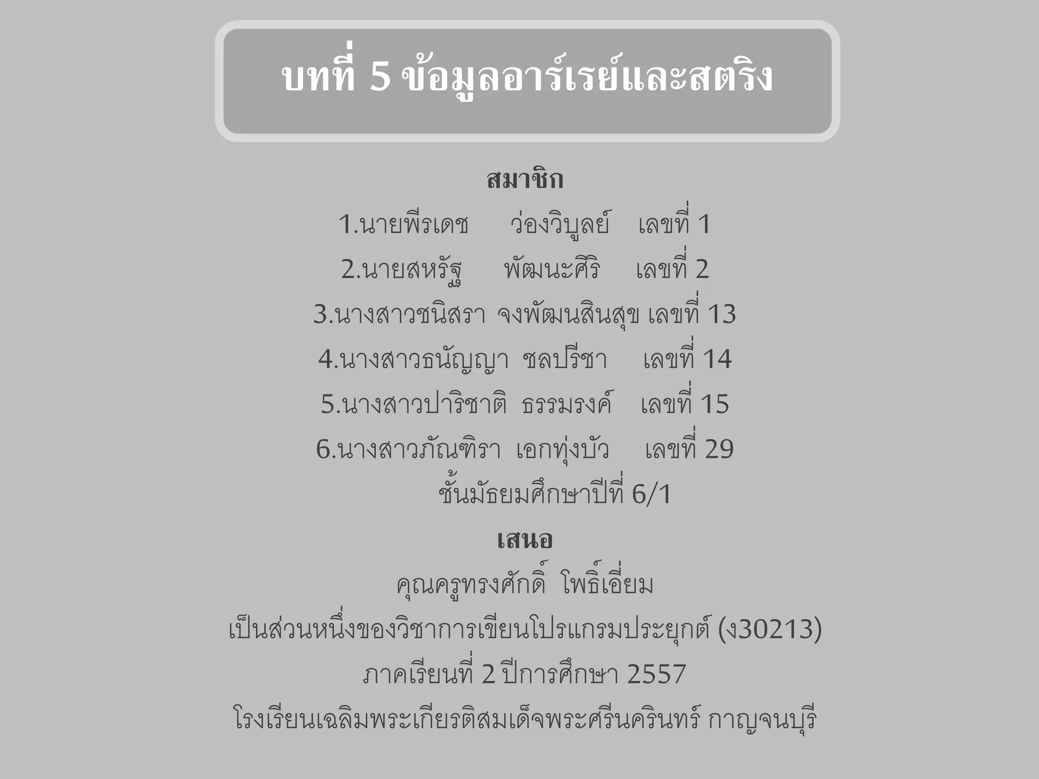 บทที่ 5 ข้อมูลชนิดอาร์เรย์และสตริง