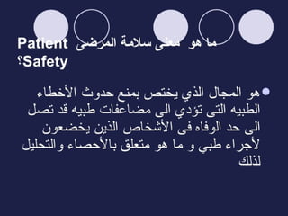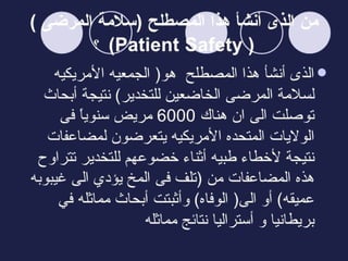 الوثيقة تتناول تحسين جودة الرعاية الصحية للمرضى من خلال تطبيق نموذج فعال. يتم التركيز على وسائل تحسين التعامل مع المرضى وتقليل الأخطاء الطبية والمخاطر المتعلقة بالعلاج. يحتوي النص أيضًا على تحذيرات حول انتشار العدوى والضرر الناتج عن سقوط المرضى وعلاج القروح السريرية.