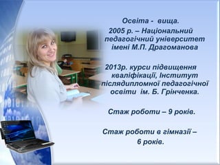 2005р. закінчила Українськийдержавний педагогічний