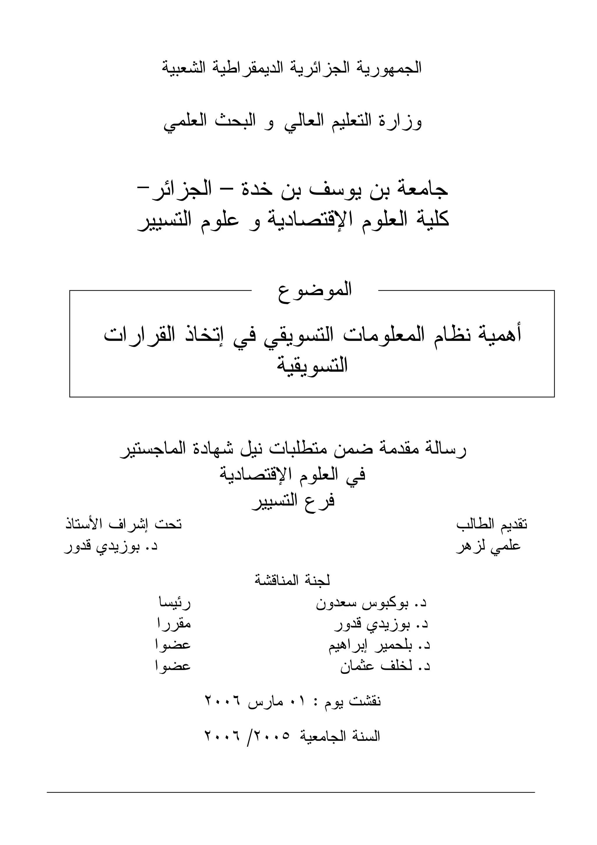 Notre thème de recherche porte sur :" L’importance du système d’information marketing
