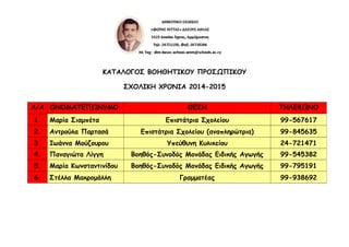 ΚΑΤΑΛΟΓΟΣ ΒΟΗΘΗΤΙΚΟΥ ΠΡΟΣΩΠΙΚΟΥ
