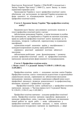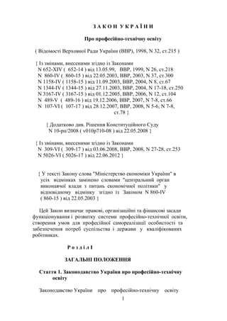 ЗАКОНУ УКРАЇНИ "ПРО ПРОФЕСІЙНО-ТЕХНІЧНУ ОСВІТУ"