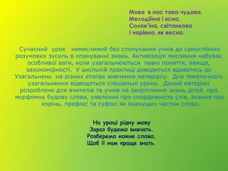 морфемну будову слова, уявлення про спорідненість слів, знання про