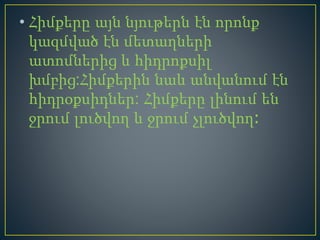 հիմքեր 2. • Հիմքերը այն նյութերն էն որոնք