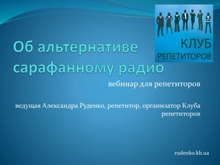 Вебинар, проведенный Александрой Руденко, фокусируется на стратегиях привлечения новых клиентов для репетиторов, подчеркивая важность сарафанного радио и качественного обслуживания. Обсуждаются различные методы активного общения с клиентами и создания благоприятного имиджа, включая использование социальных сетей и проведение мероприятий. Также рассматриваются трудности, возникающие при работе с клиентами, и способы их решения, включая формирование эффективной воронки продаж.