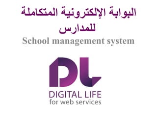 يتضمن النظام الإلكتروني لإدارة المدارس مجموعة من الخدمات التي تسهل التواصل بين المعلمين والطلبة وأولياء الأمور. يقدم النظام ميزات مثل جدول الحصص وإدارة الشهادات وإرسال الرسائل القصيرة. يهدف إلى تعزيز فعالية التعليم وتحسين الإدارة المدرسية من خلال تسهيل الوصول إلى المعلومات والتواصل.