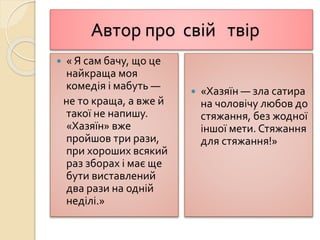 Проблематика комедії «Хазяїн»